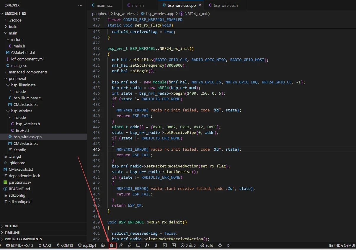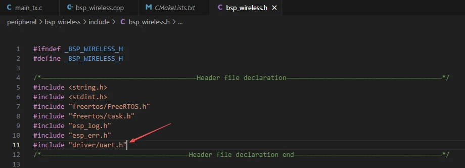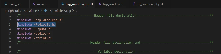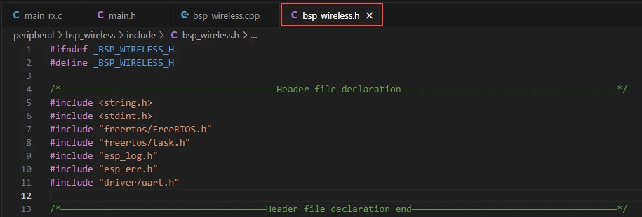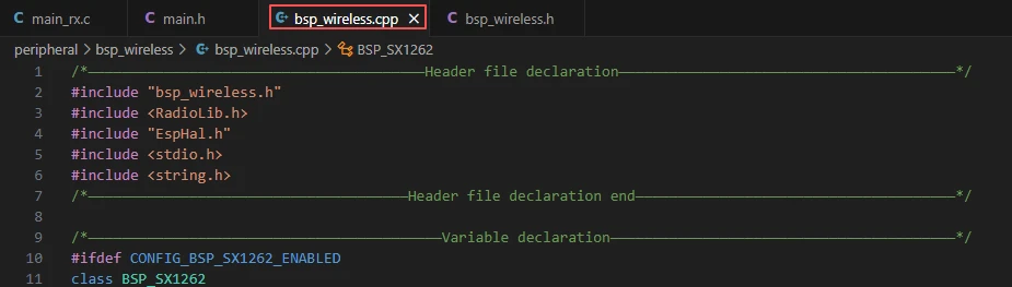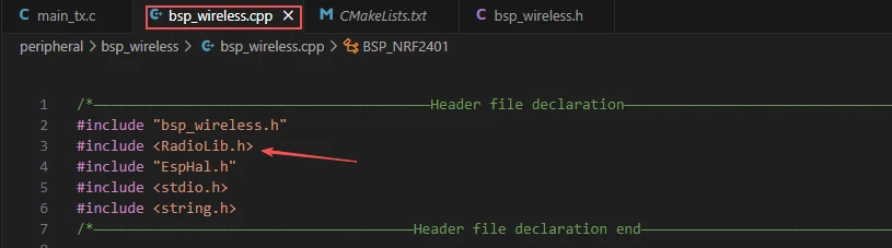In this component, the libraries we need to use are placed in the "bsp_wireless.h" and "bsp_wireless.cpp" files.