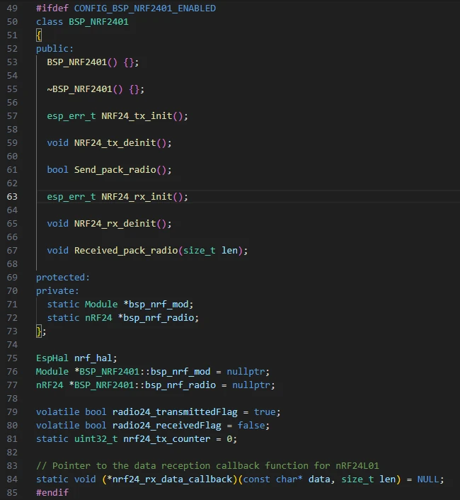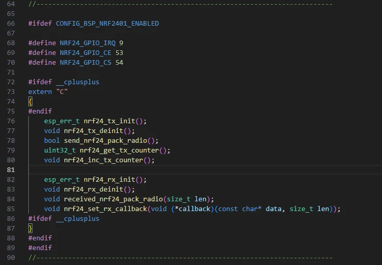 Finally, a function pointer nrf24_rx_data_callback is defined to trigger an upper-layer callback when data is received.