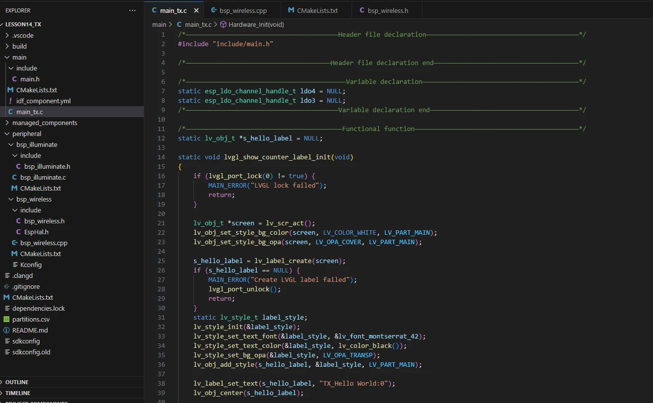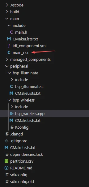 In these two projects, only the implementations in the main functions main_tx.c and main_rx.c differ; all other code files are identical. (For convenience, we have provided two separate main functions for use.)