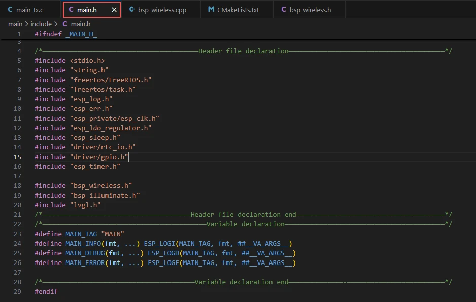 The above is the main function code for the transmitter. Next, let's take a look at the main function code for the receiver.