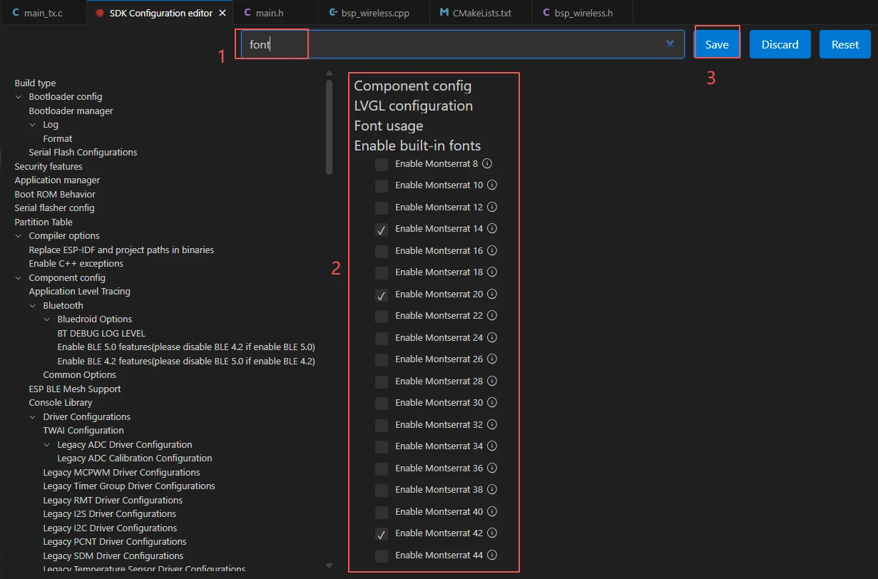 If you want to change the LVGL font size, you need to enable the fonts in the SDK configuration.