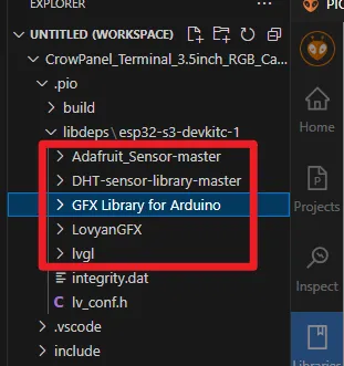 Right-click the "libdeps\esp32-s3-devkitc-1", click "Reveal in File Explorer", and select the sensor libraries we provided.