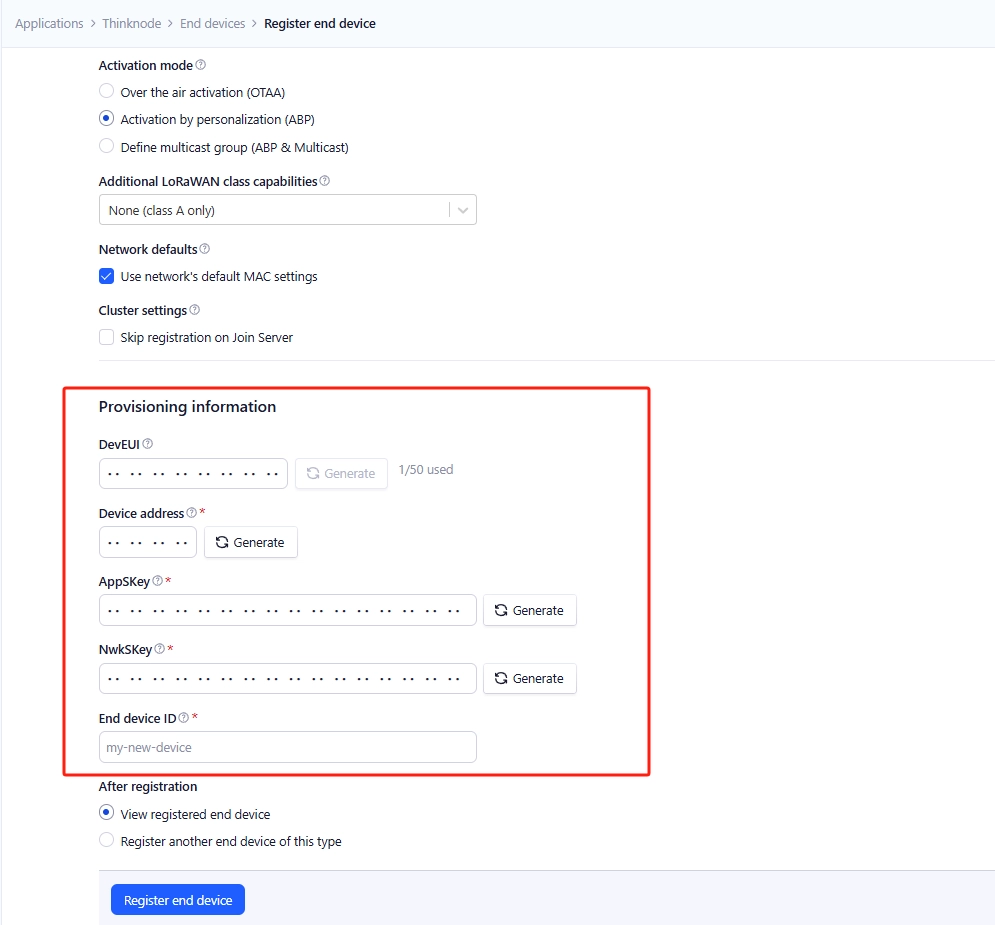 Click Register end device