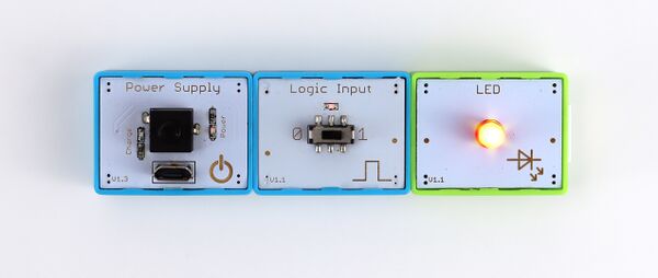 The logic Input is a small and convenient way to input digital logic commands (high or low) into your circuit. The logic input has two states, logic low and logic high (1 and 0). The number 0 on the board means logic low-level, the number 1 means logic high-level. When sliding the switch to 1, it will output a logic high-level signal. Otherwise, slide the switch to 0, it will output a logic low-level signal.